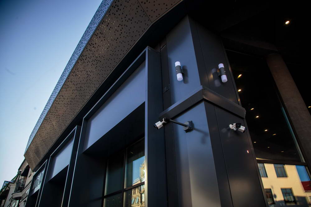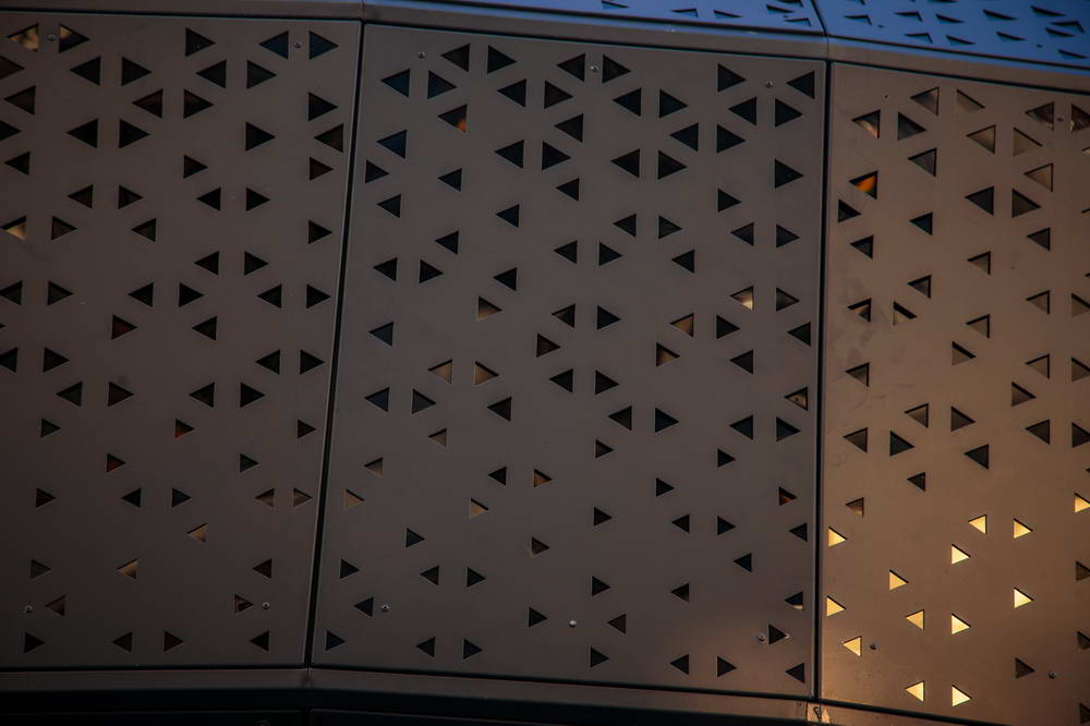 Облицовка фасада стен здания алюмокомпозитными панелями — 150 м2, облицовка карниза здания перфорированными алюминиевыми панелями толщиной 2 мм — 100 м2, цветными линеарными панелями «Золотой дуб» 0,5 мм — 90м2, панелями открытого типа из оцинкованной стали RAL толщиной 0,7 мм; 1,2 мм — 200 м2.