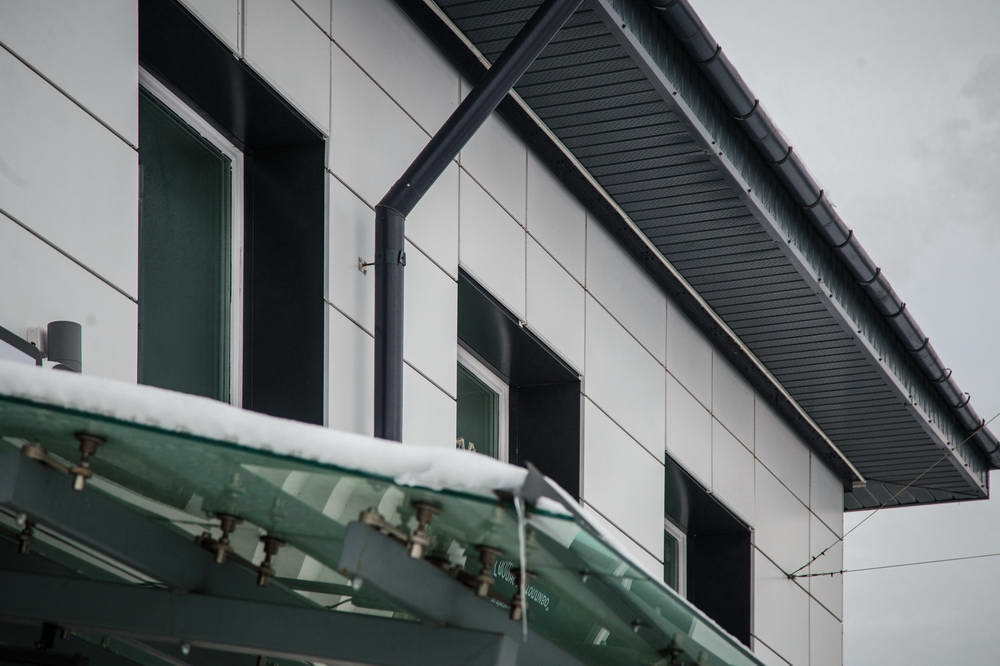 Облицовка фасада стен здания панелями закрытого типа из оцинкованной стали RAL толщиной 1,2 мм – 500 м2.