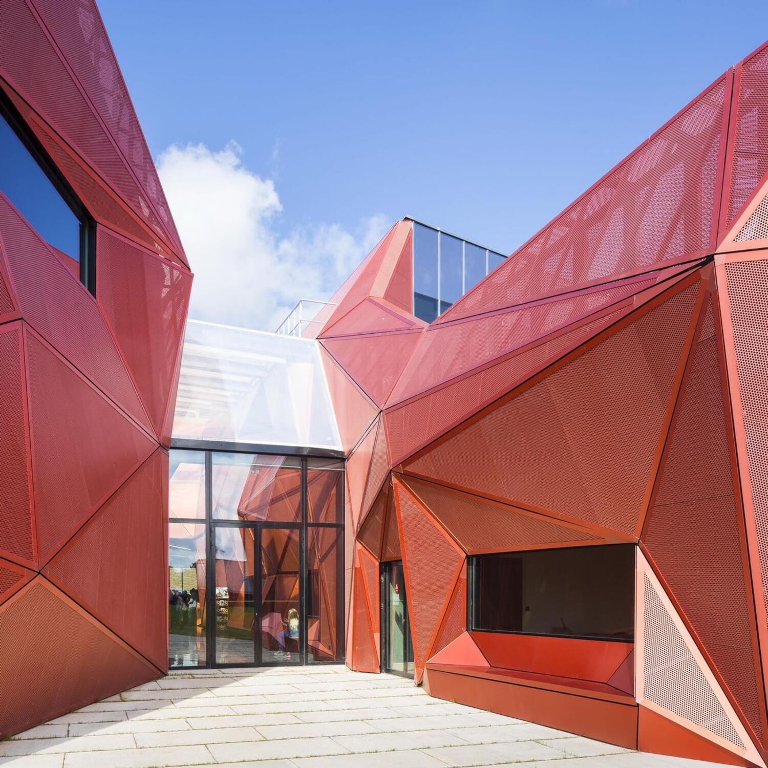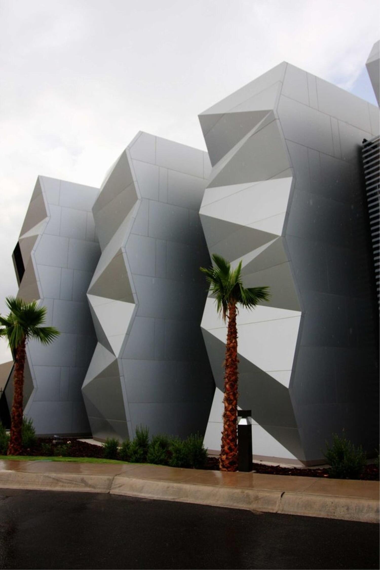 Чаще всего объёмные фасадные панели «АБСТРАКЦИЯ» применяются в отдельных частях здания либо архитектурного объекта с лицевой стороны либо парадного входа, так же могут применяется в сочетании с перфорацией. Такие объемные фасады требуют индивидуальной разработки несущего каркаса (подсистемы фасада), с расчетом нагрузок.