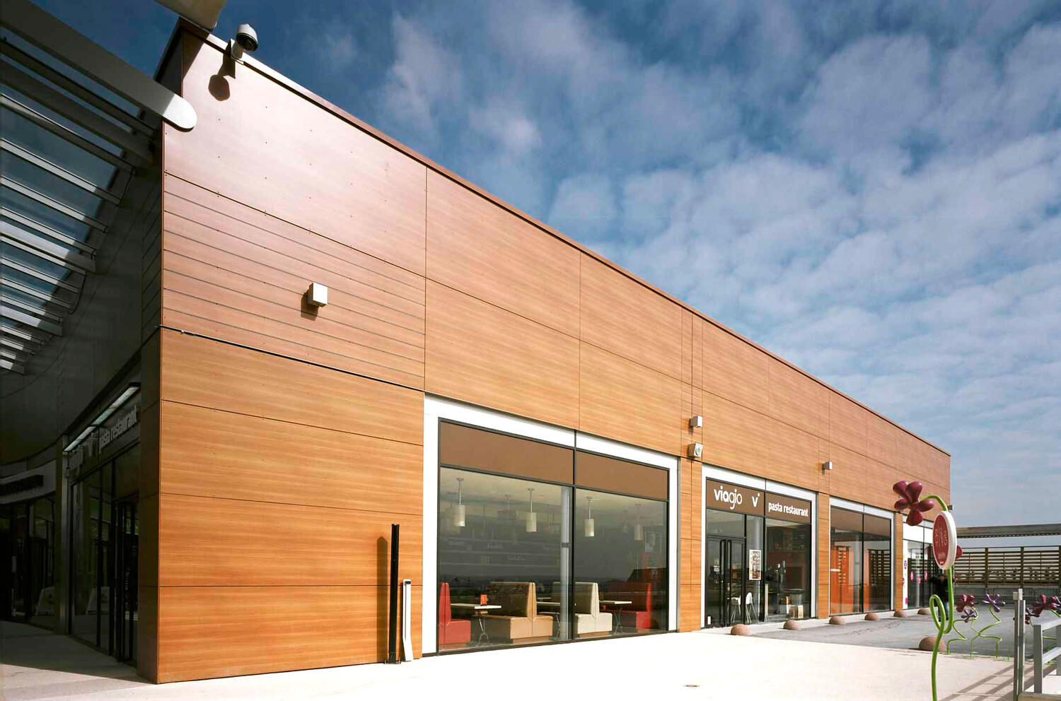 Плитами облицовывают вентилируемые фасады. Материал идеально подходит для объектов с жесткими санитарно-гигиеническими требованиями – детских, школьных учреждений, спортивных центров, медицинских заведений, общепита.